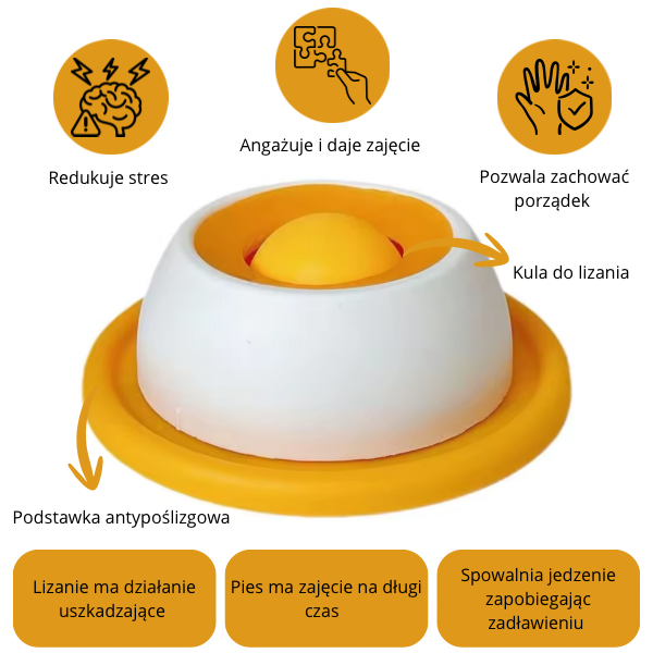 Ta innowacyjna miska z kulką spowalniającą jedzenie to idealne rozwiązanie dla zwierząt, które jedzą zbyt łapczywie. Specjalna konstrukcja wydłuża czas posiłku, co pomaga zapobiegać zadławieniu oraz wspiera prawidłowe trawienie. Dodatkowo interaktywna kulka angażuje pupila, redukując stres i zapewniając mu zajęcie na dłużej.