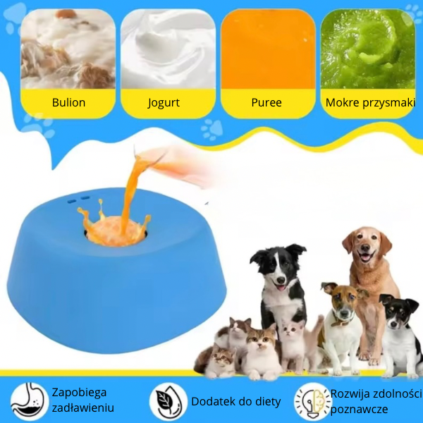 Wypełnij ulubionym przysmakiem i pozwól swojemu zwierzakowi zdobywać go poprzez zabawę. Lizanie i naciskanie pomaga się wyciszyć, spowalnia jedzenie i zapewnia dłuższą rozrywkę.