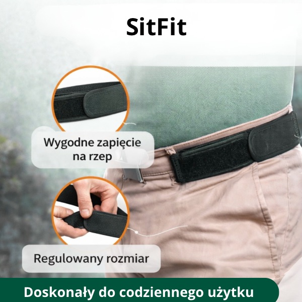 Dzięki mocnemu rzepowi dopasujesz pasek dokładnie tak, jak chcesz – bez dziurek i bez kombinowania. Zakładasz, dociskasz i gotowe. Przy korzystaniu z toalety nie musisz go odpinać, co zapewnia dodatkową wygodę.